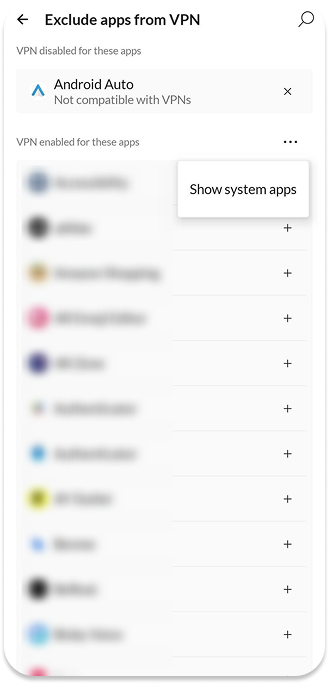 Vælg de apps, du ønsker ikke skal berøres af VPN-forbindelsen.