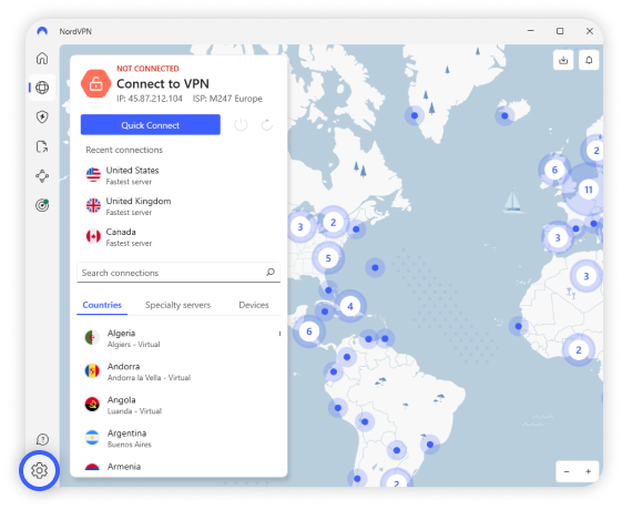 Følg trinnene i denne vejledning for at ændre indstillingerne for sprog i NordVPN-appen på din Windows-enhed: