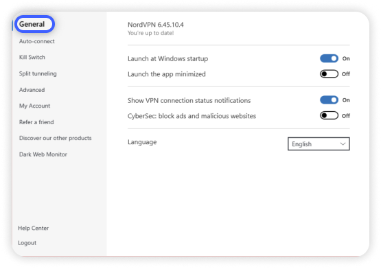 Når du har gennemført trinnene, bliver sproget i din NordVPN-app ændret til det, du har valgt.