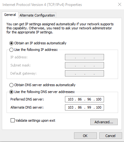 Alternate DNS: 103.86.99.100