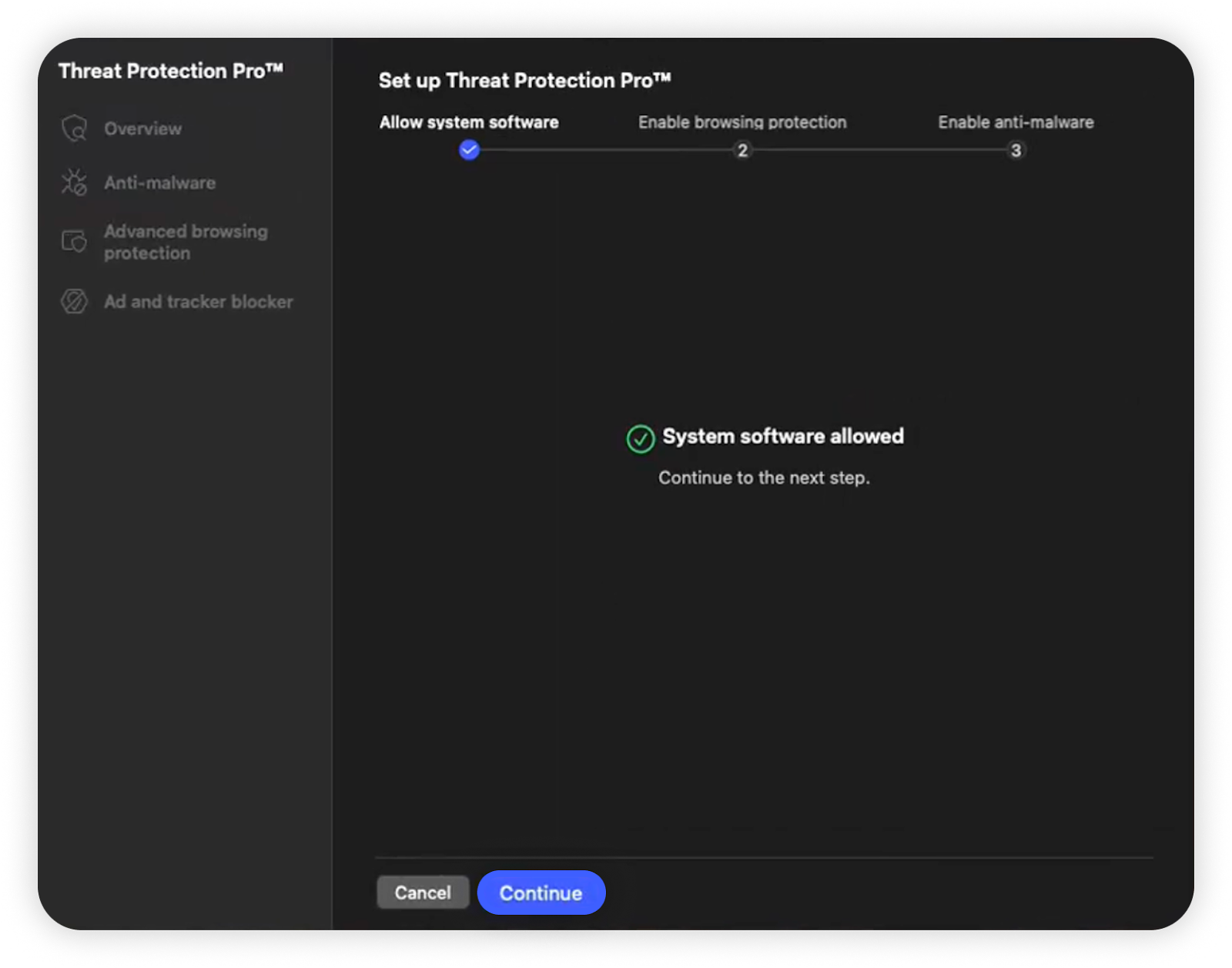Læs vejledningen nedenfor for at aktivere og begynde at bruge Threat Protection Pro™ på de seneste macOS-versioner. Hvis du bruger en ældre version af macOS, kan du læse Sådan aktiverer du Threat Protection Pro™ på ældre macOS-versioner.