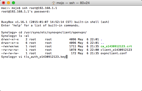 11. You will now need to manually edit the OpenVPN profile on your Synology NAS. To do so you need to SSH as root.