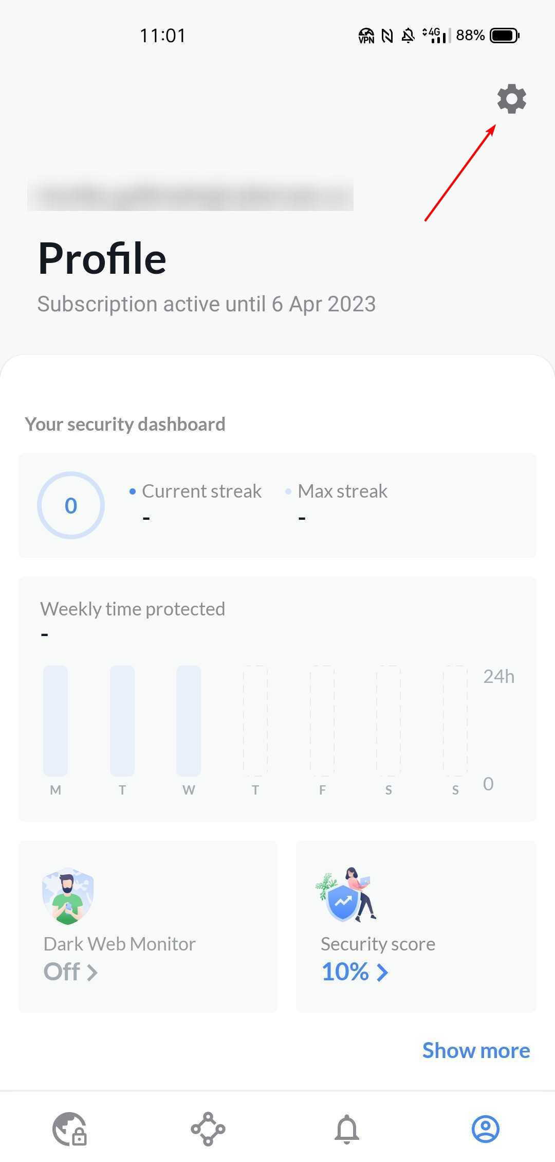 - Gå til Konto- og app-indstillinger i nederste højre hjørne, og tryk på tandhjulsikonet i øverste højre hjørne: