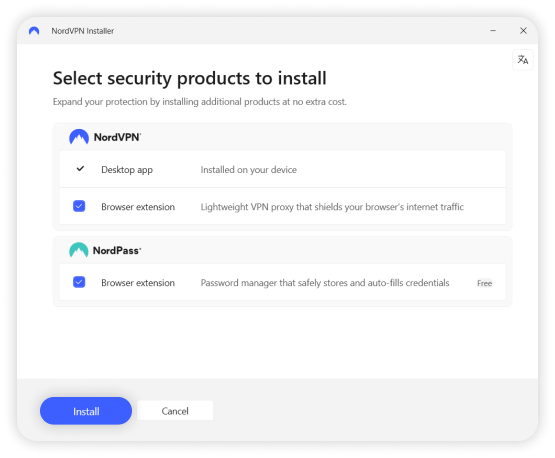 oder die NordVPN-Browsererweiterung nicht benötigst, und klicke auf