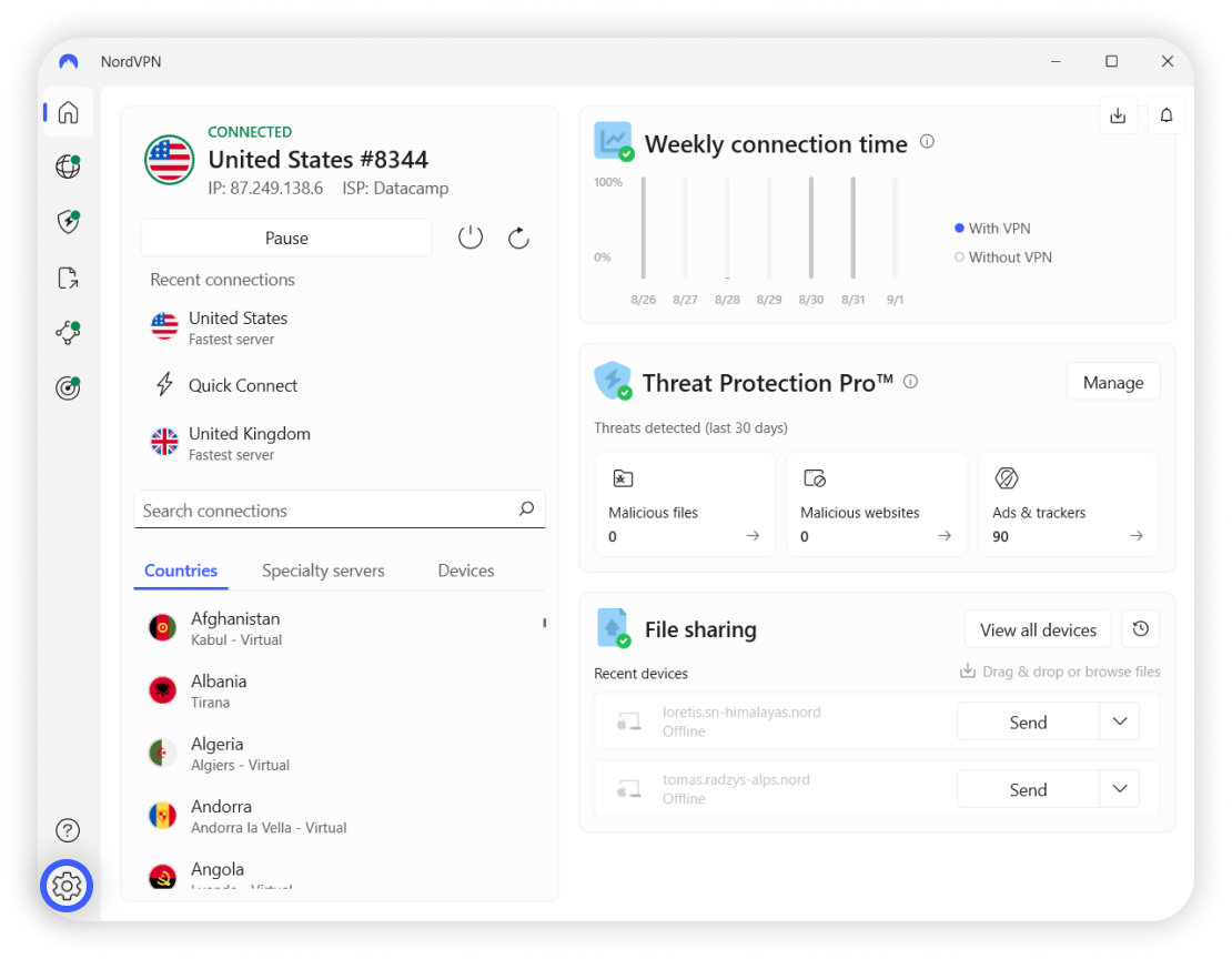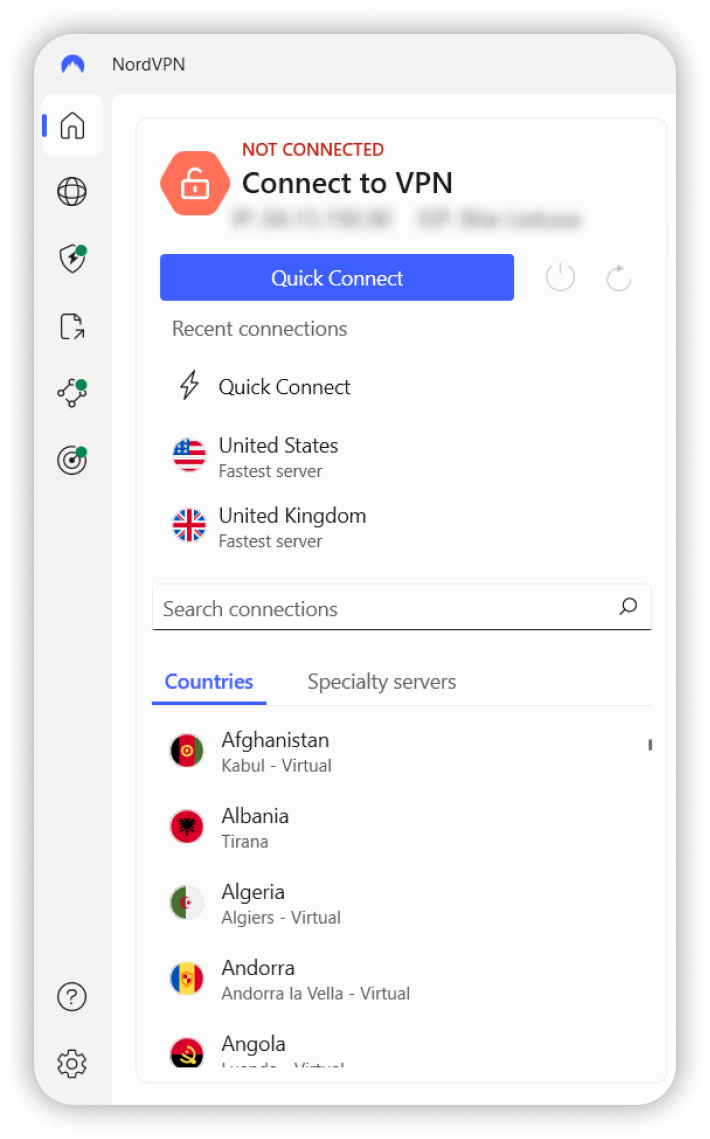 - Verbindung schützen (Secure my connection): Diese Option verbindet dich automatisch mit dem schnellsten und nächstgelegenen NordVPN-Server.
