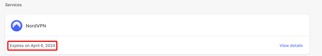 Gehe zur Nord-Account-Seite und überprüfe den Status deines Kontos. Unter dem NordVPN-Dienst solltest du den Status Aktiv sehen.