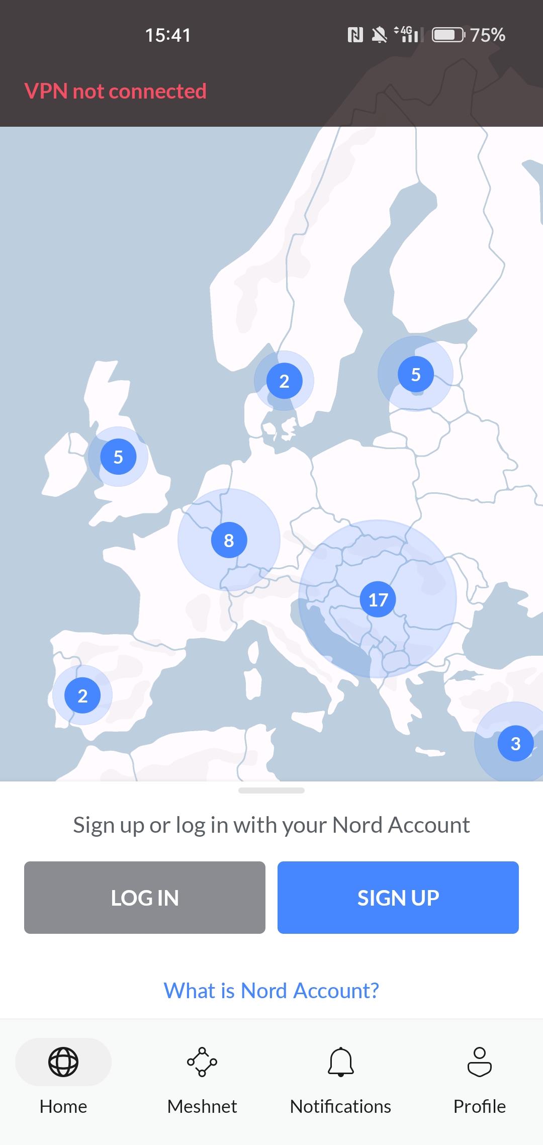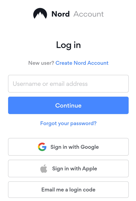 3. Pressing on any of the two buttons above will open your browser and take you to our Nord Account page, where you can either proceed with logging in or creating an account.