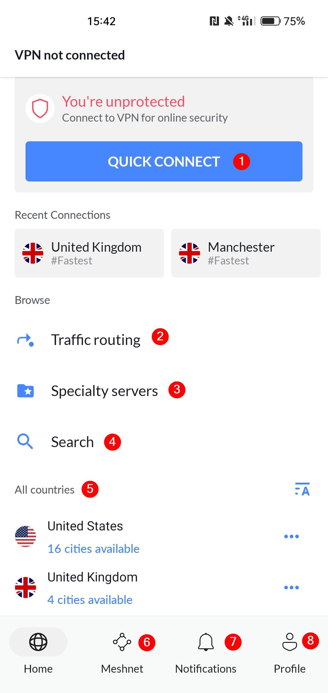 8. Meshnet: this feature allows you to create a secure, private network for many devices located anywhere in the world, access them remotely, and send all your online traffic through another device.