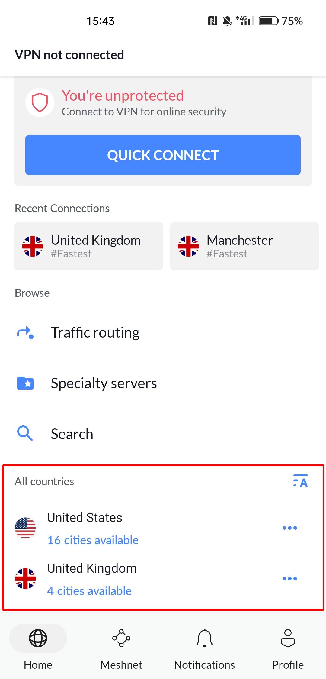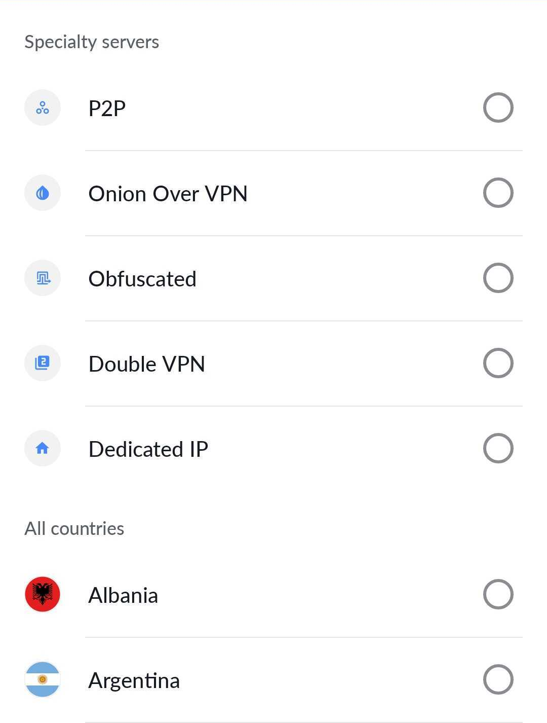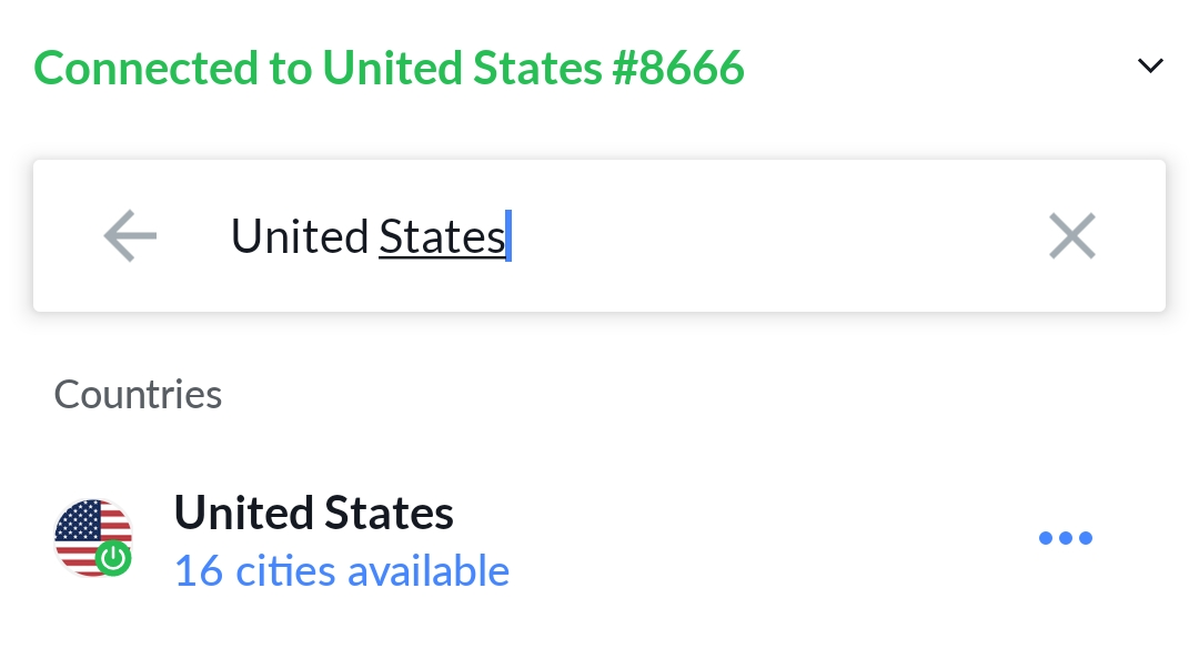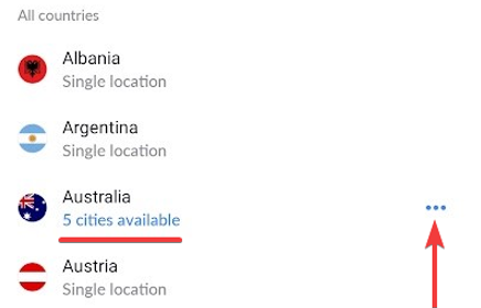 Connecting to a specific city: You can tap on the three dots next to a country to select a specific city.