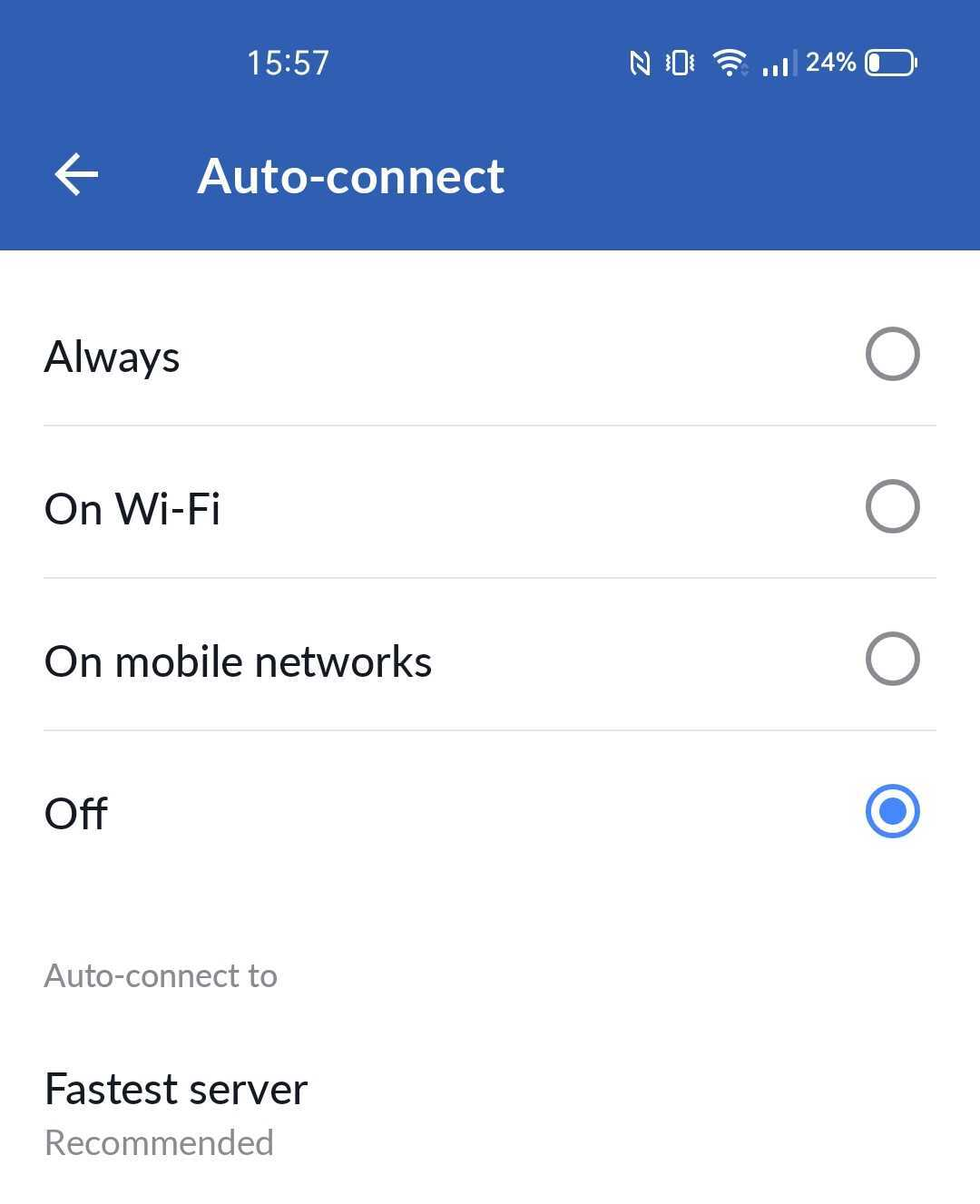 Auto-connect: this option allows you to have the app automatically connect you to a VPN server the soonest there is access to the internet. Click here to learn more about this feature.