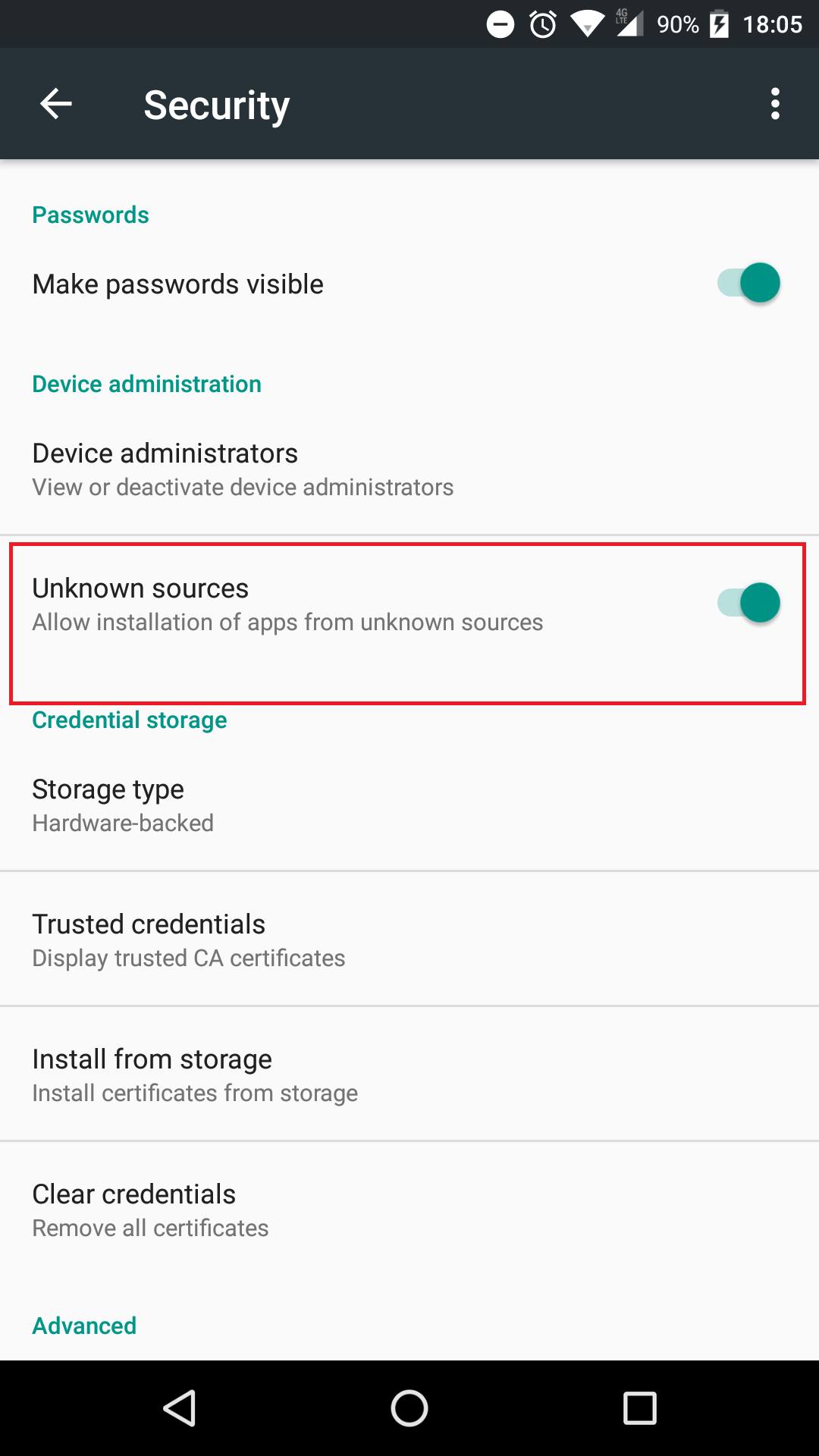 On Android version 7.0 and below, you can find this option in Settings > Security > Unknown sources.