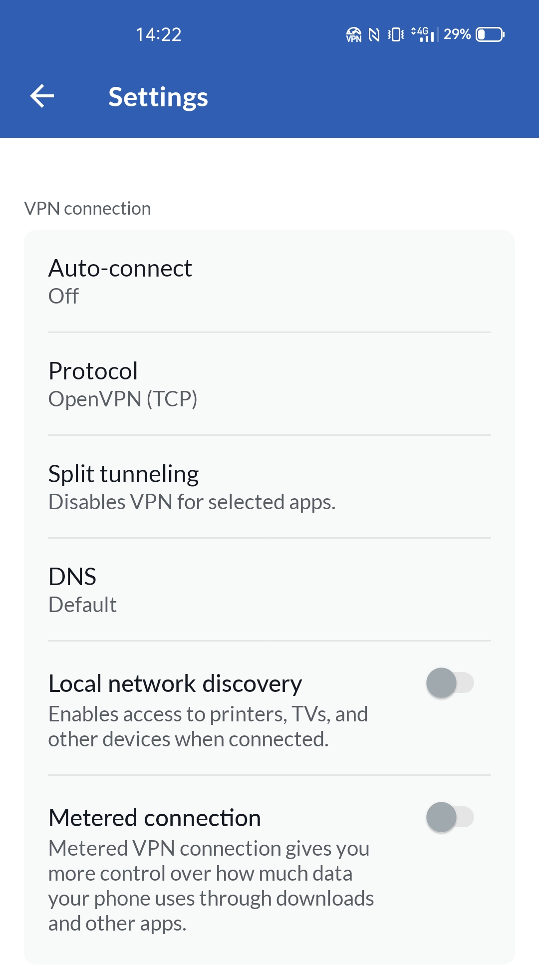 Split tunneling: this allows you to specify which apps go through the VPN connection.