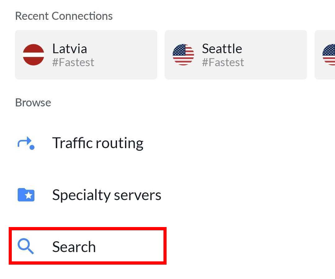 The search bar can help here, too. Type in the name of the city, and it will appear as long as we have VPN servers in it.