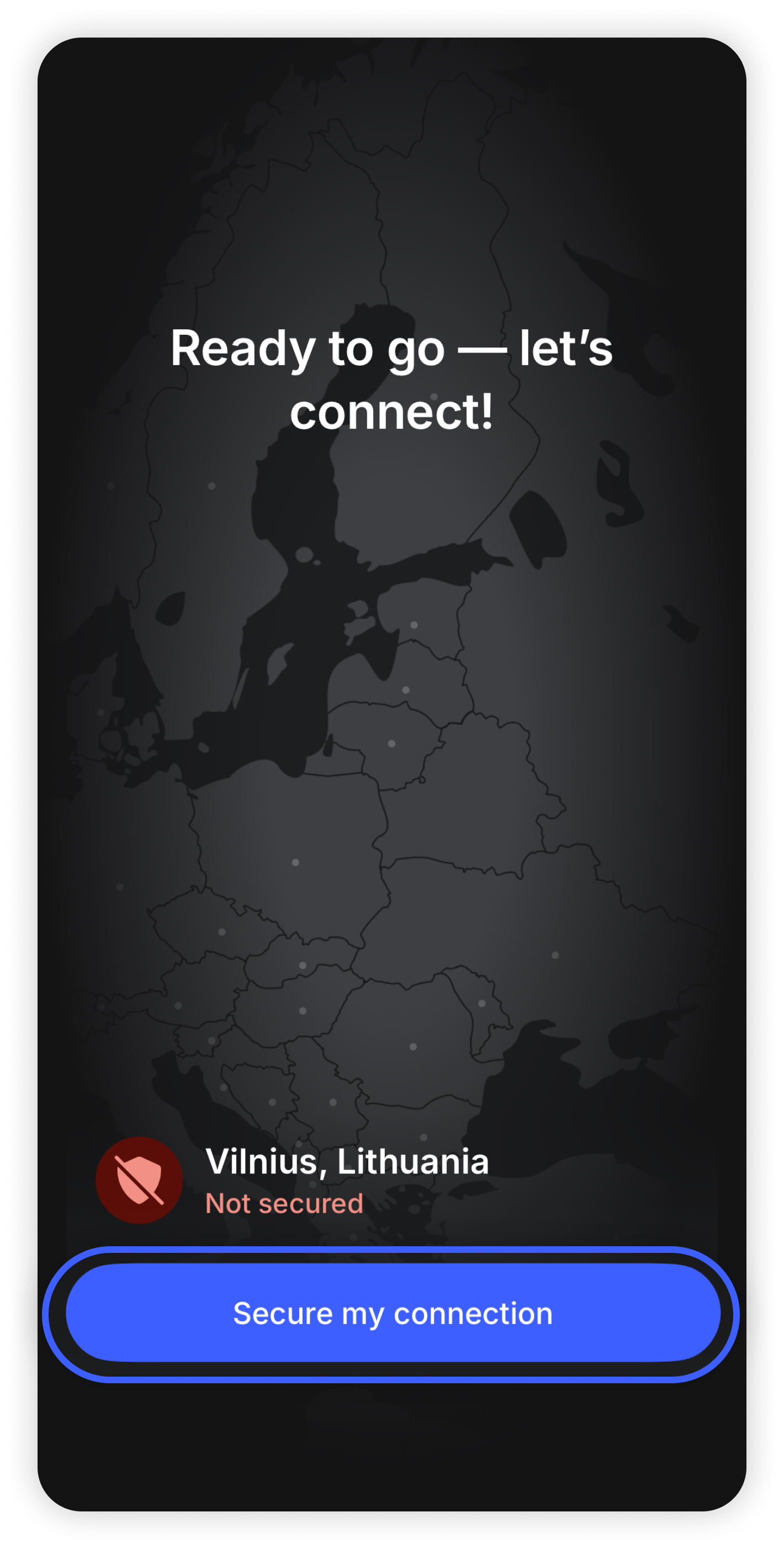 - Tap "Secure my connection" to automatically connect to the best available server.