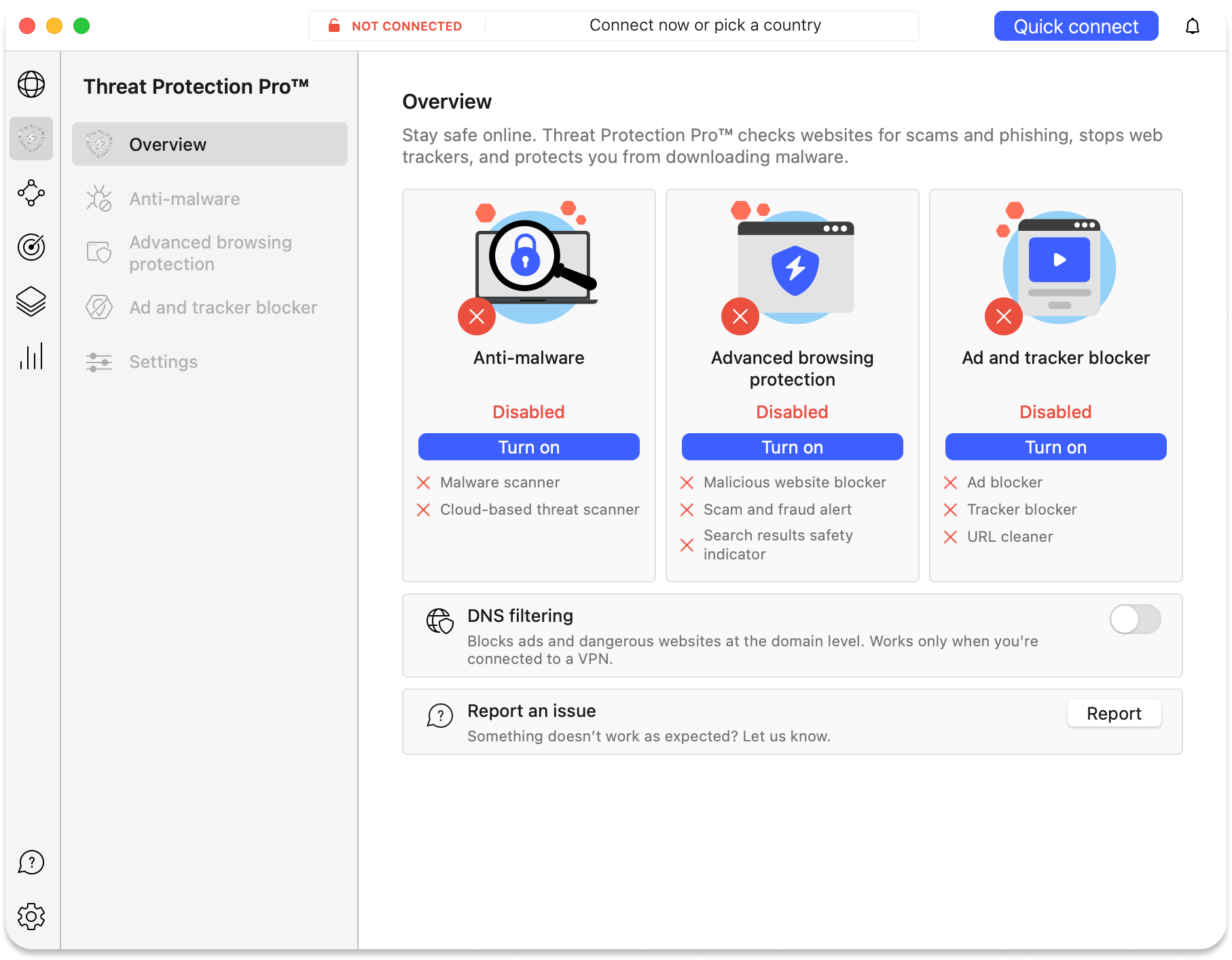 - Threat Protection Pro™. Click the shield icon in the left sidebar of the NordVPN application to block ads, malicious websites, and trackers.