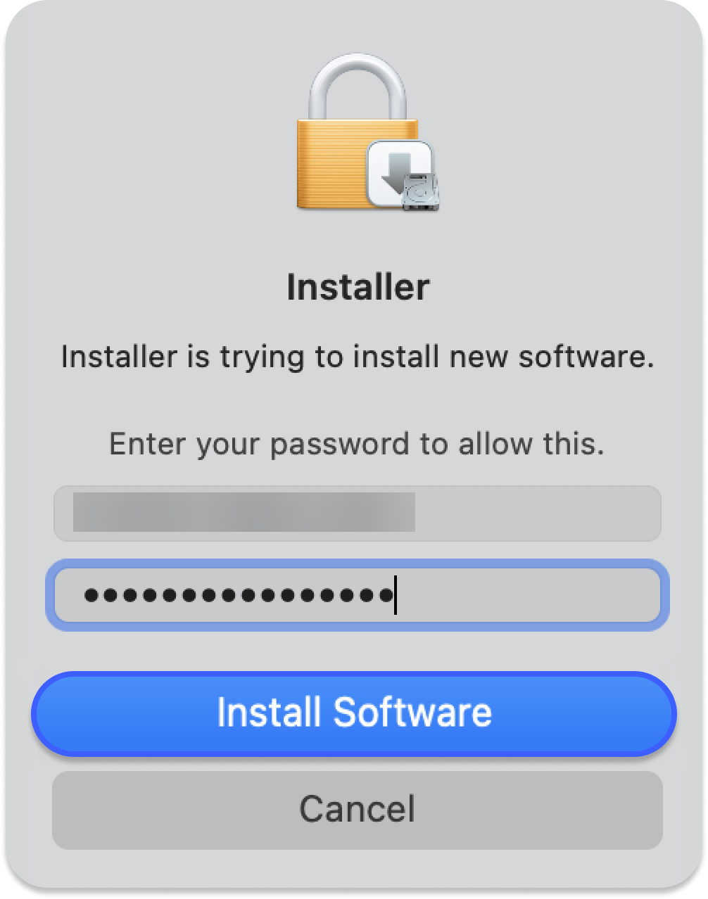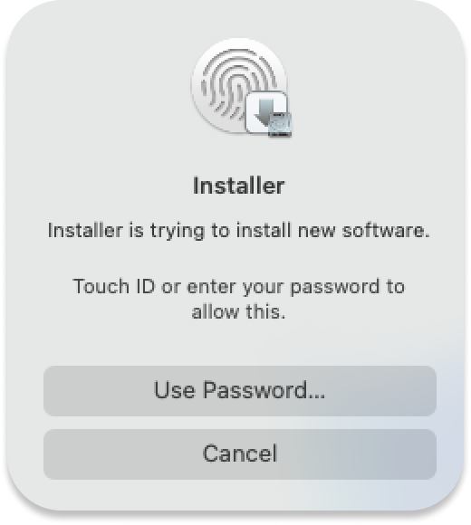 - When prompted, enter your Mac's password or use Touch ID to authorize the installation.