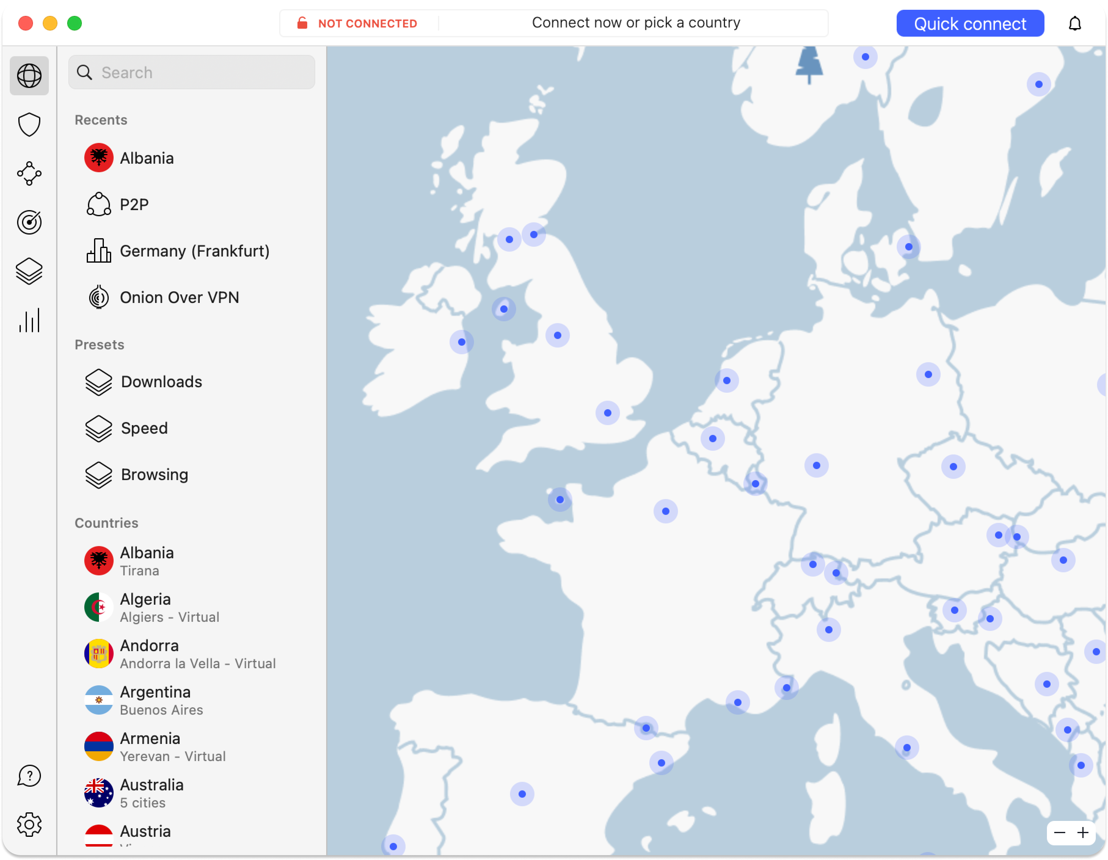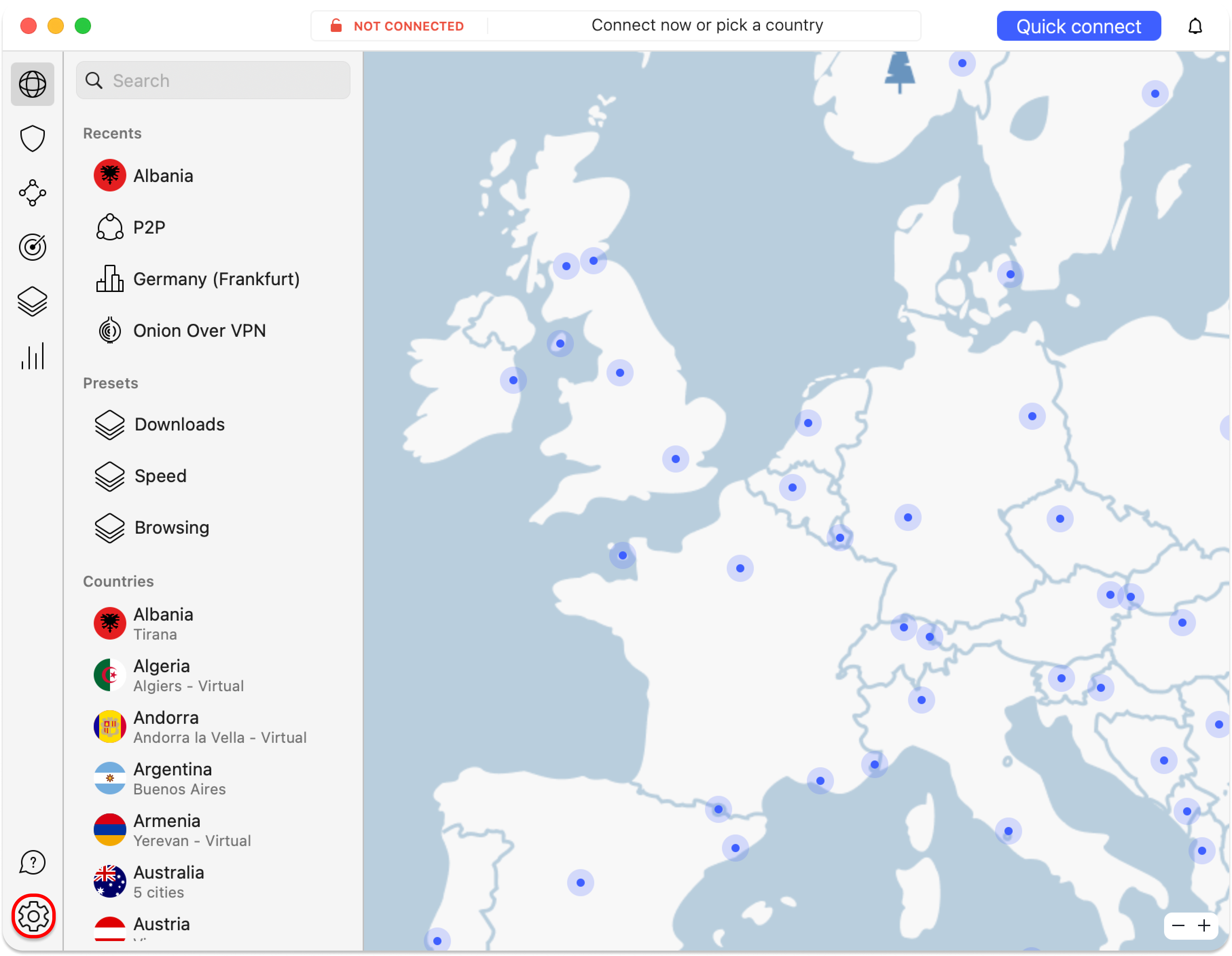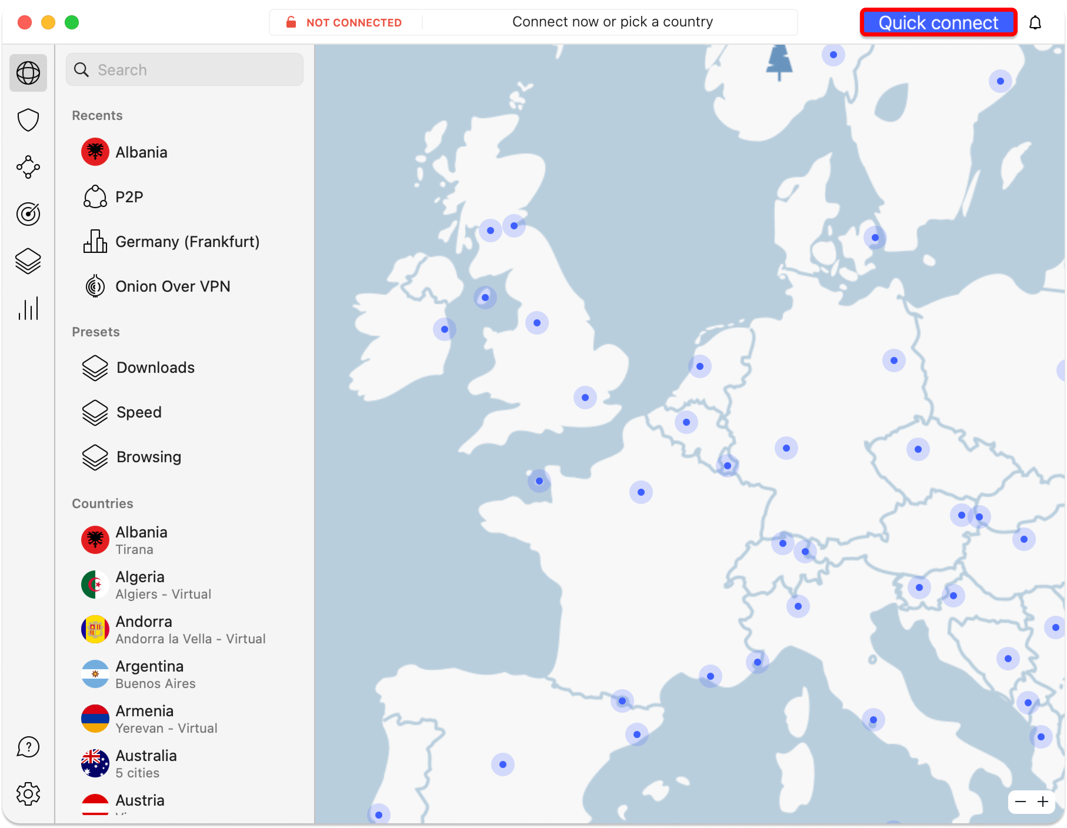 - For the fastest connection click the "Secure my connection" button in the top-left corner.