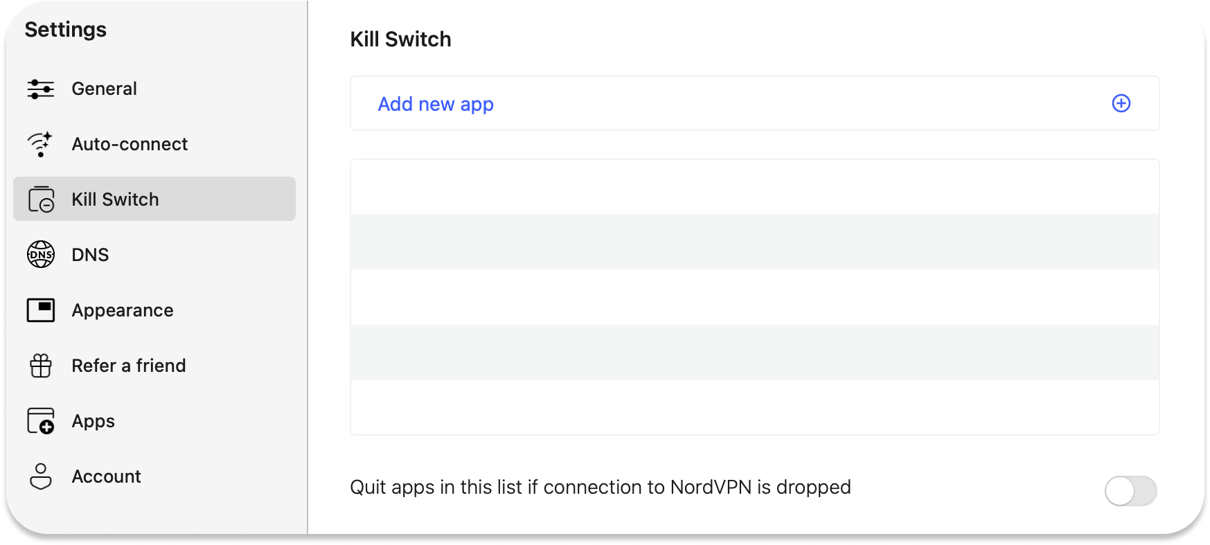 - Enable the Kill Switch to prevent unprotected internet access if the VPN connection drops.