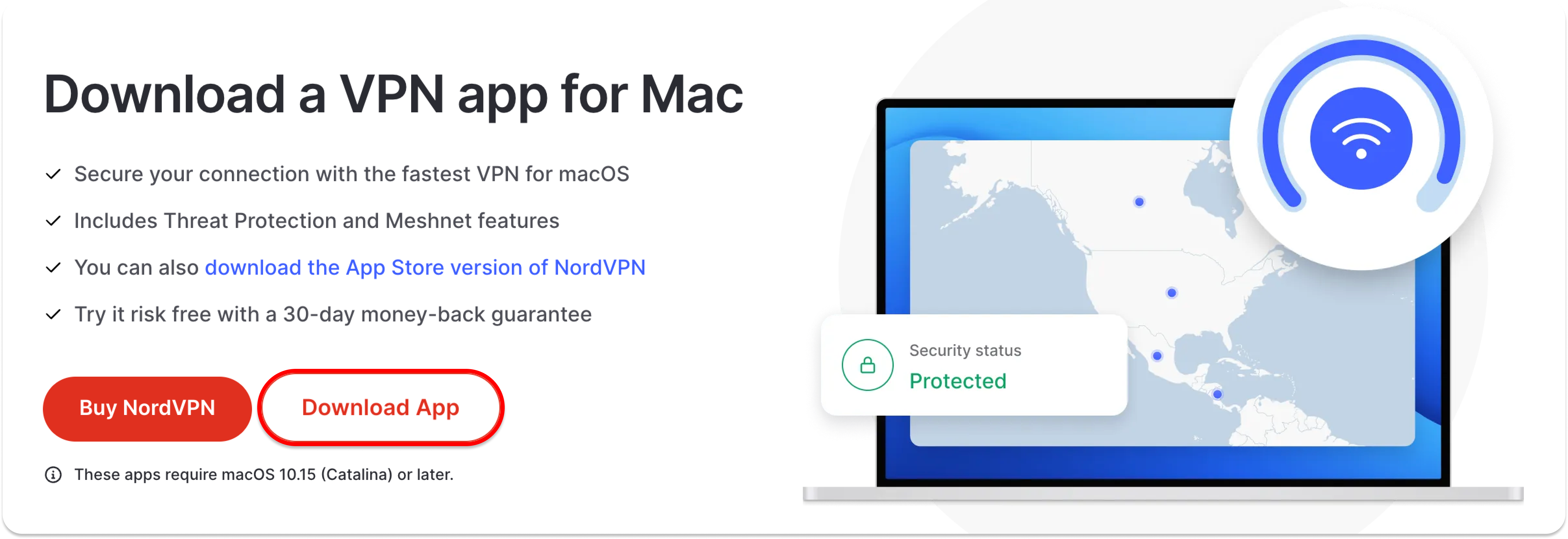 - Go to the official NordVPN macOS download page and click the "Download App "button.