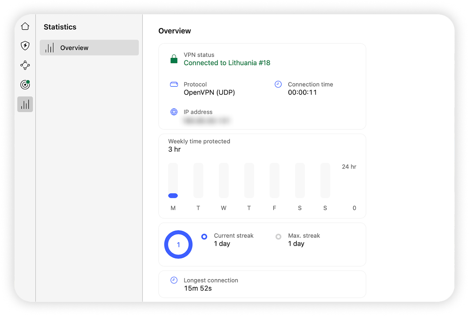 Kill Switch prevents unprotected access to the internet when your VPN connection accidentally drops.