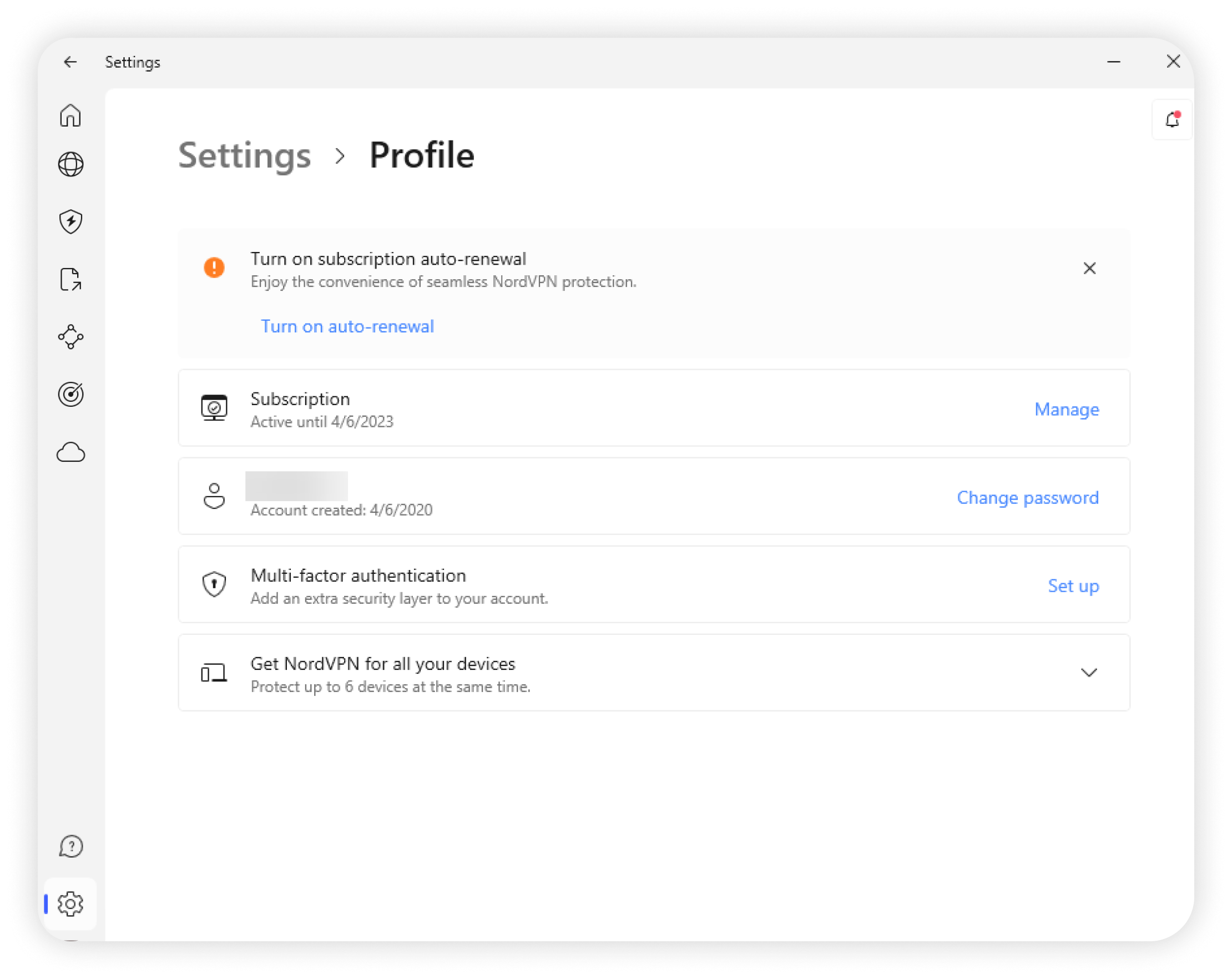 - Launch the app minimised to the system tray, which displays the NordVPN icon only in the Windows system tray when the computer starts (instead of opening the main window)—enabled by default.
