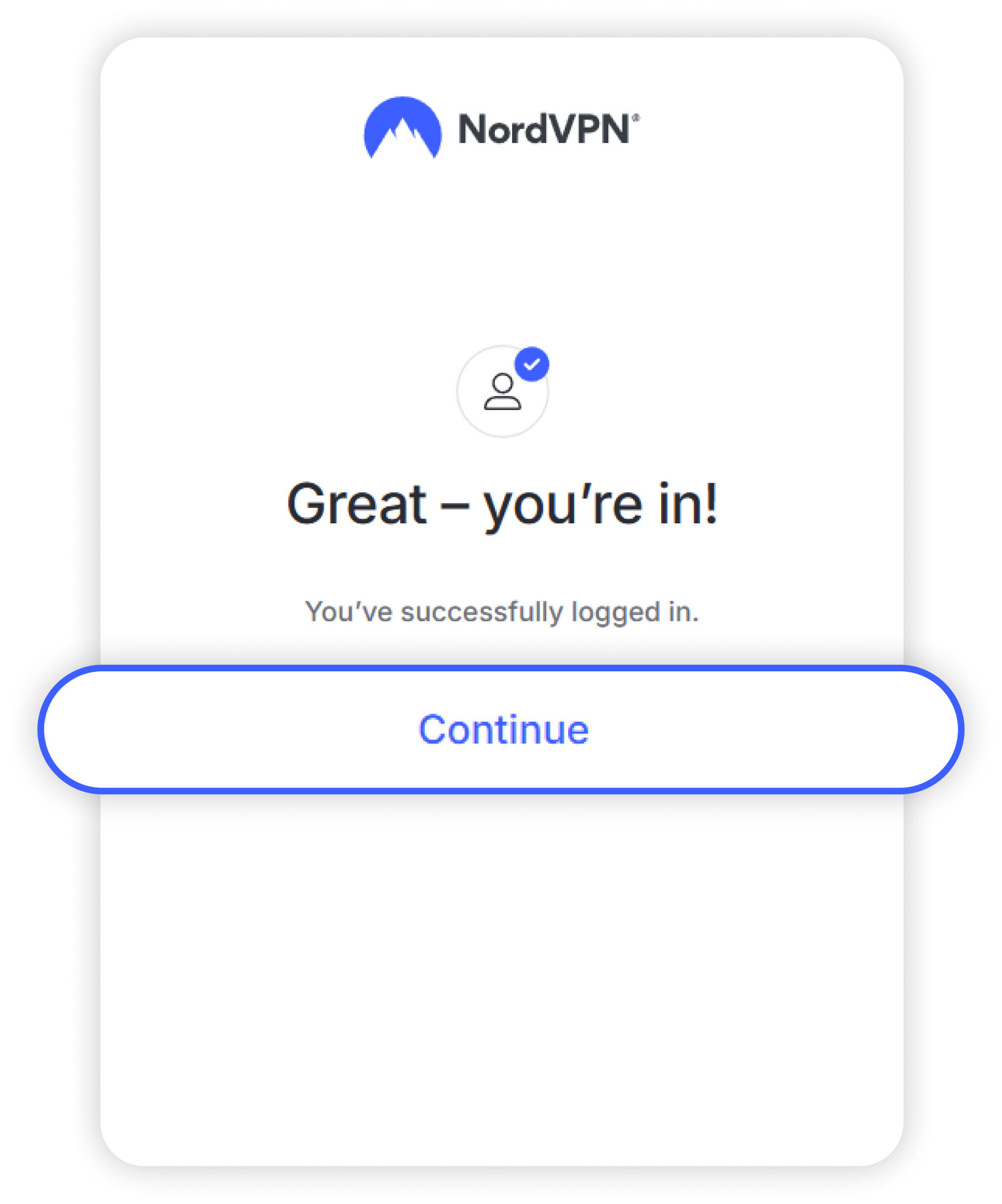- Your browser will open and load the Nord Account login page. First, enter your username or email address, press Continue, and then enter your password. If you set up to be able to log in using other methods, you may log in with Google or an Apple ID. Follow our guide on how to get an active account or subscription if you don't have one.