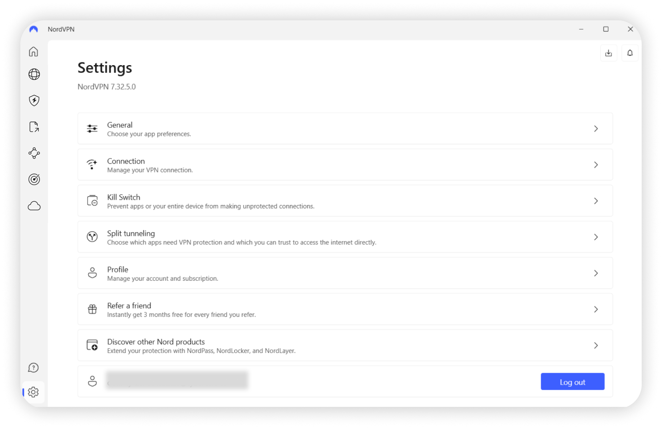 - Language: The dropdown lets you select your preferred language for the NordVPN app.