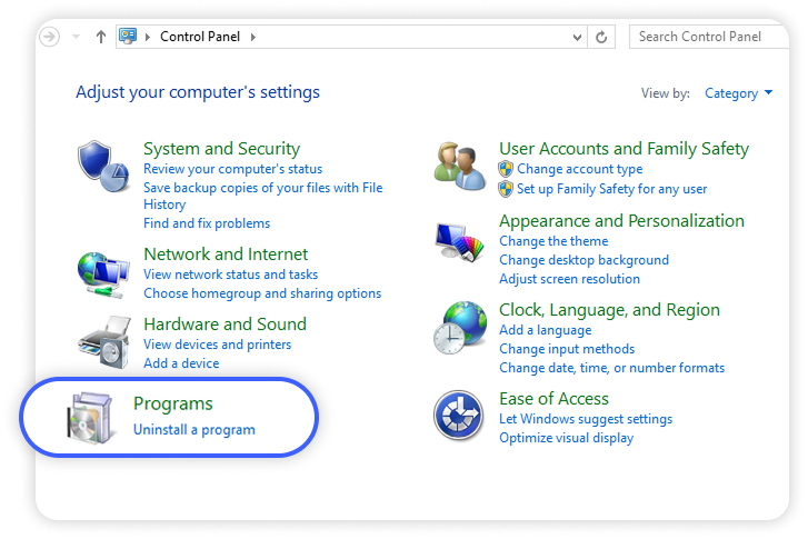 - Select uninstall a program:
