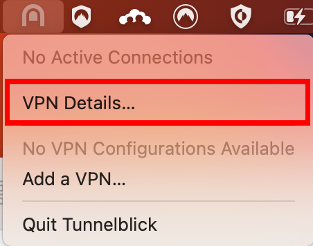 Alternatively, you can click on the Tunnelblick icon in the status bar and select VPN details...: