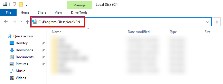 - Then click on the link bar ar type in C:\Program Files\NordVPN