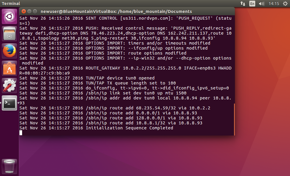 10. Wait for the VPN connection to be established. It is indicated by the Initialization Sequence Completed message.