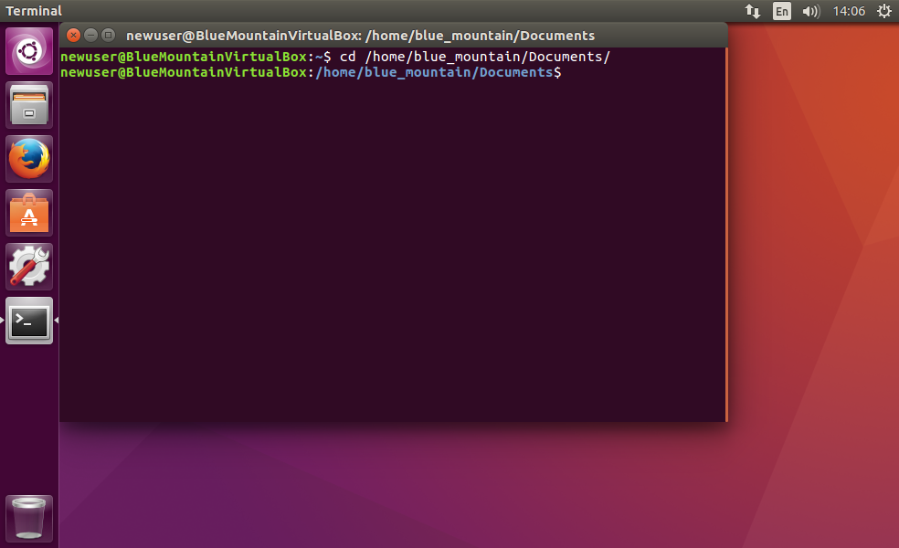 8. Open Terminal (Ctrl + Alt + T) and run cd /home/blue_mountain/Documents command: