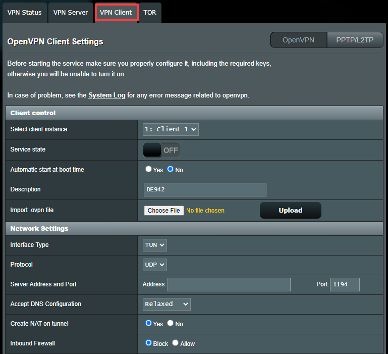 3. In the VPN section, go to the OpenVPN Clients tab.