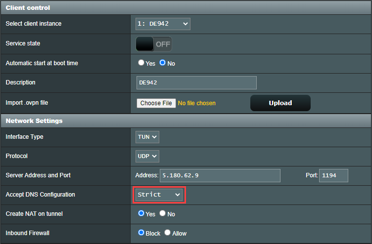 1. Set Accept DNS Configuration to Strict if you are planning to use NordVPN on all your home network devices or Exclusive if you will use it on specific devices. We recommend setting it to Strict.