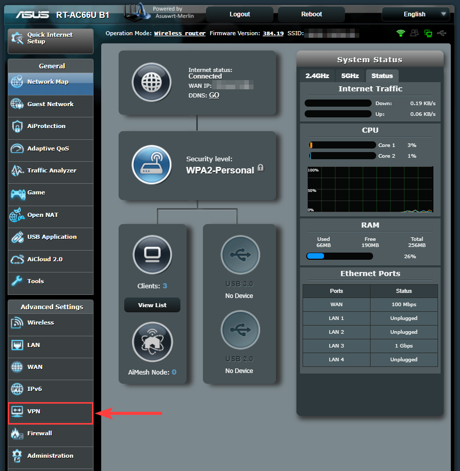 Here’s how to set up the Kill Switch feature on AsusWRT Merlin firmware: