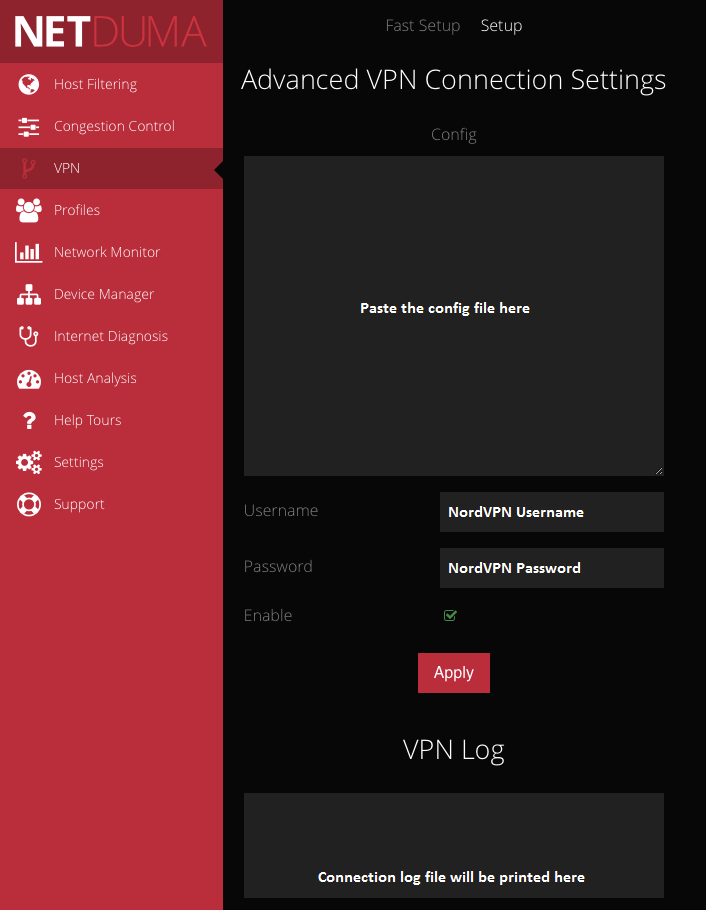 6. Type in your NordVPN service username and password in the appropriate fields.