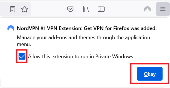 - You might be asked to allow the extension to run in a private window. Check the box and click "Okay."
