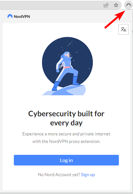 - Once installed, the NordVPN logo will appear in the toolbar at the top right corner of the browser. Click on it to launch the NordVPN extension.