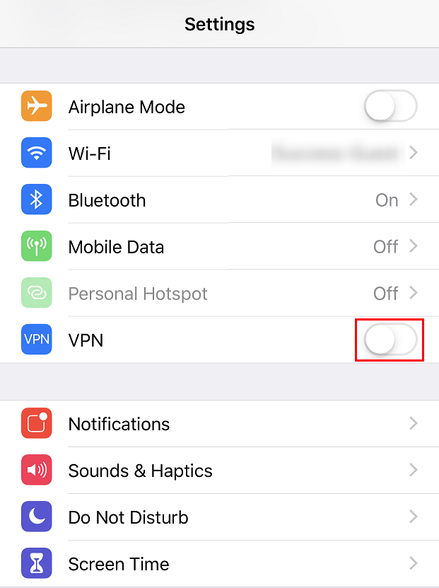 - Return to the default “Settings” menu and tap the toggle switch on the right to “VPN” to enable the VPN connection.