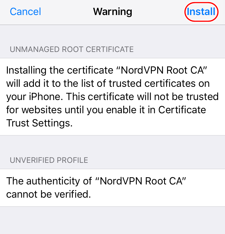 - Download the NordVPN IKEv2 certificate using the Safari browser.