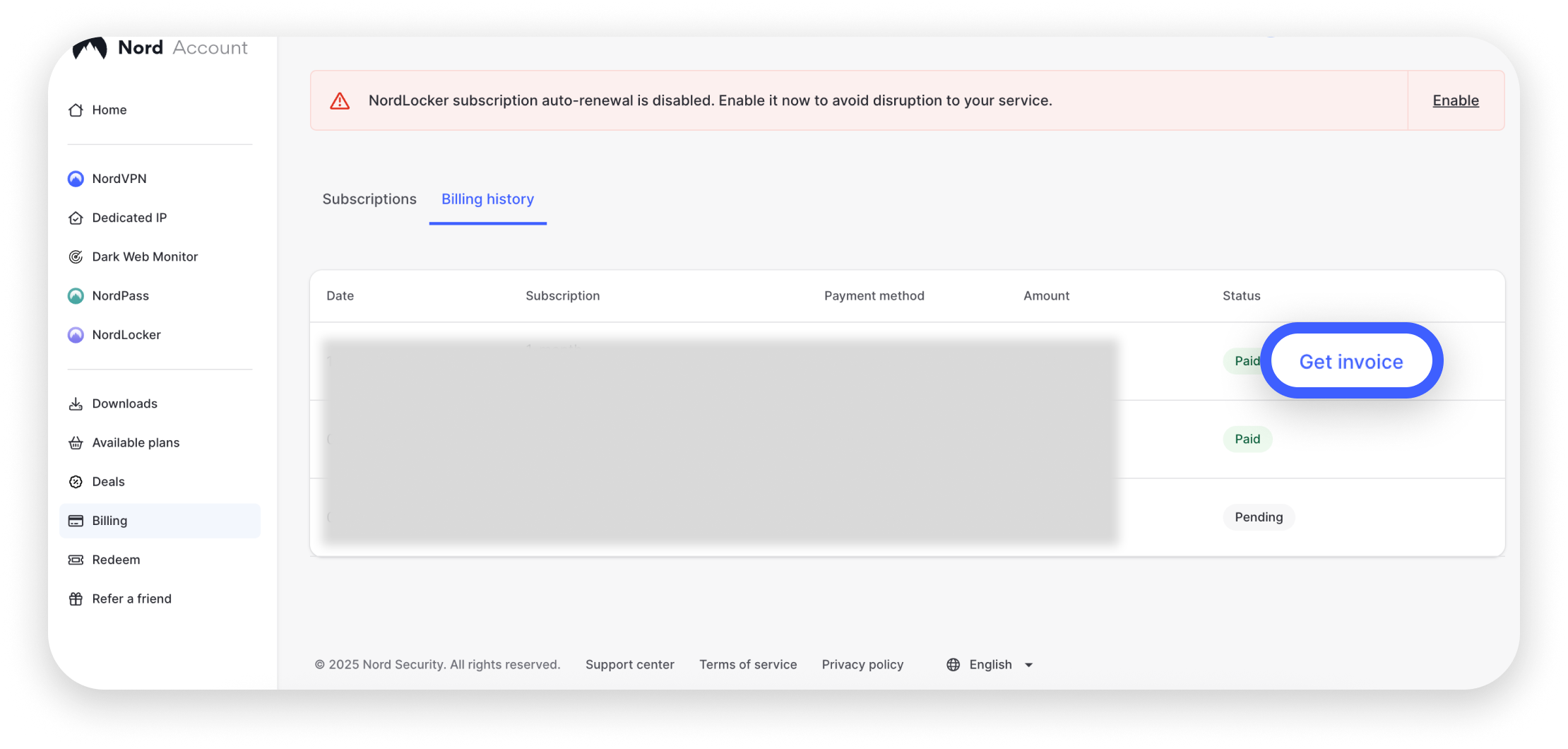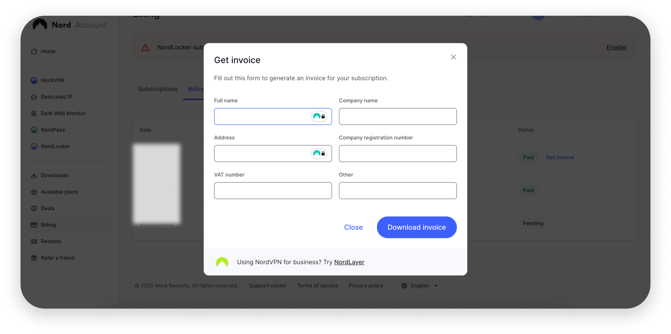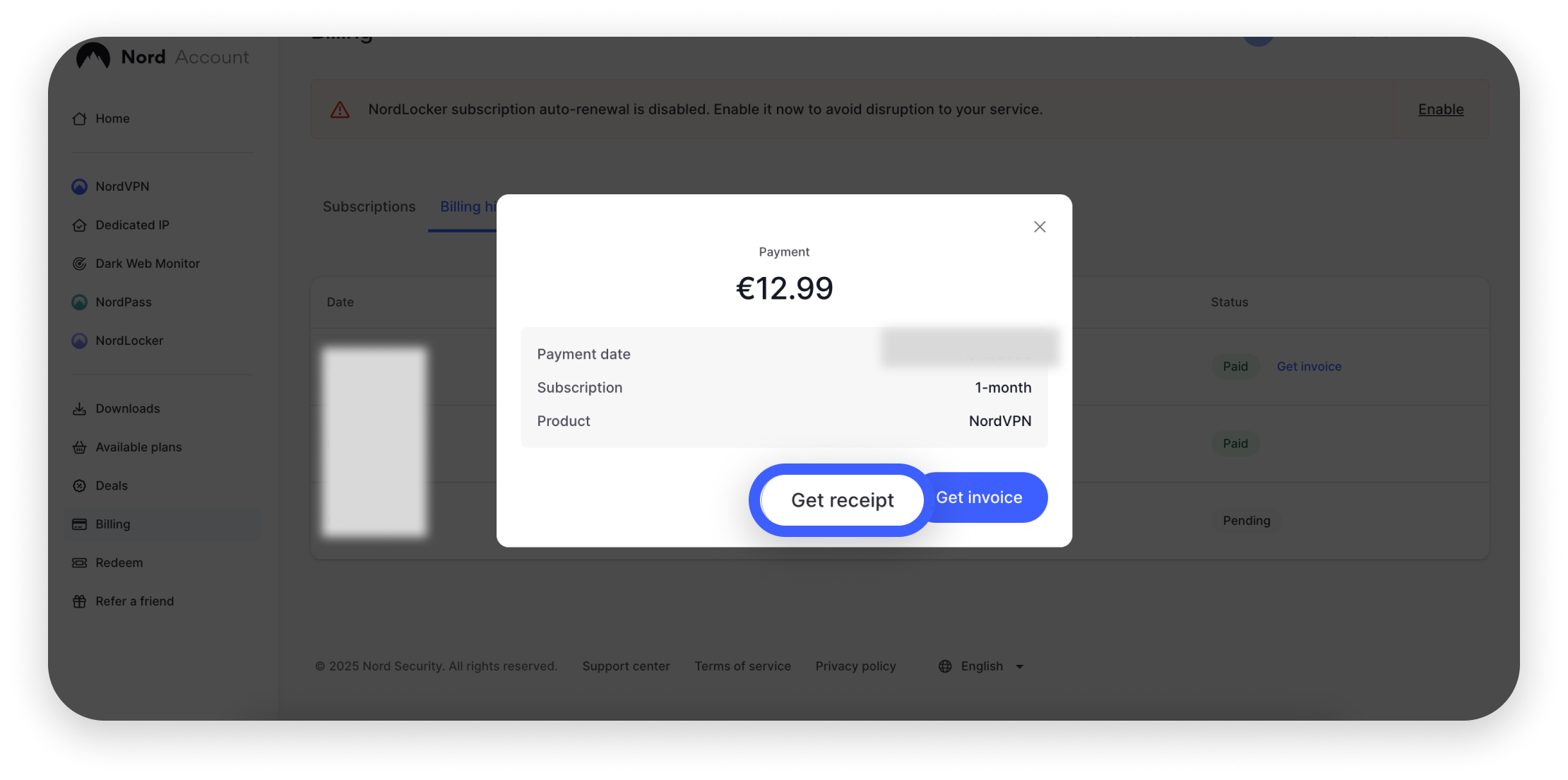 In this article, you will learn how to get a receipt or invoice from your NordVPN purchase.