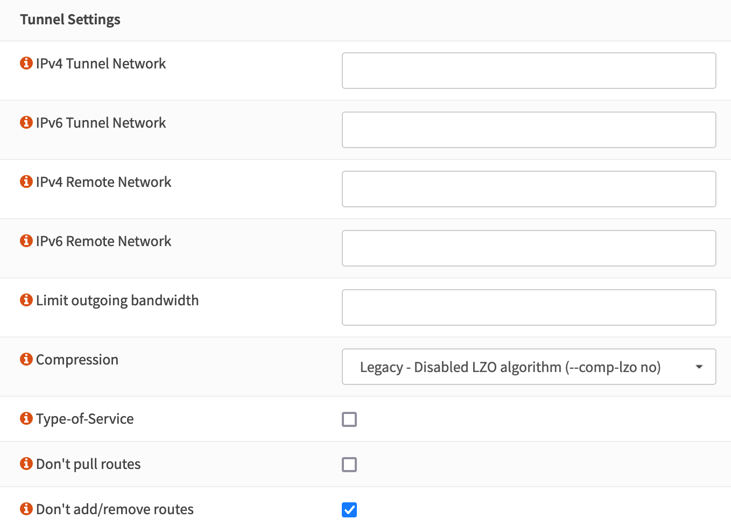 Navigate to VPN -> OpenVPN -> Clients and press the + Add button. Then fill in the fields: