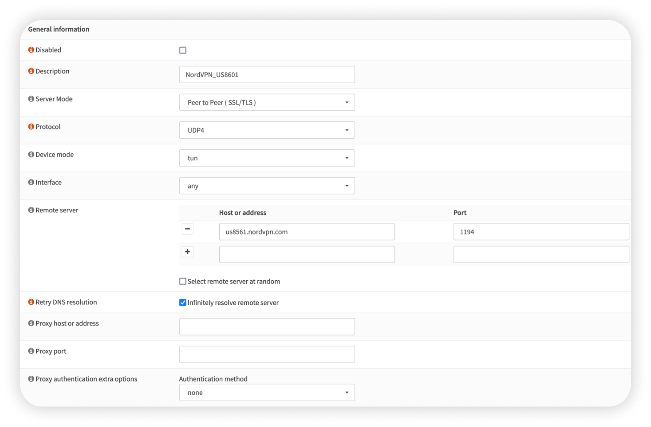 - We will configure our OPNsense to connect to the US 8561 server, but you should connect to a server suggested on this page: https://my.nordaccount.com/dashboard/nordvpn/manual-configuration/server-recommendation/.