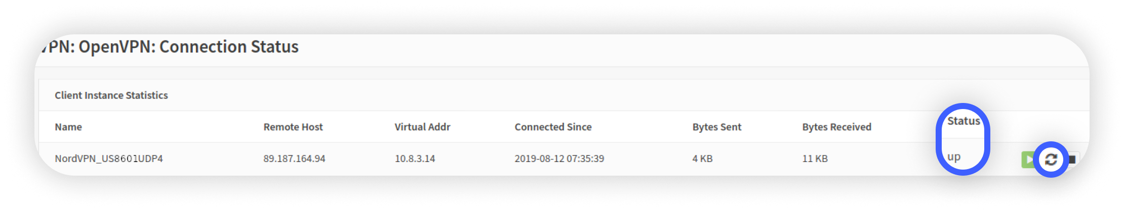 - Now you can navigate to VPN -> OpenVPN -> Connection Status, and it should state that the service is "up":