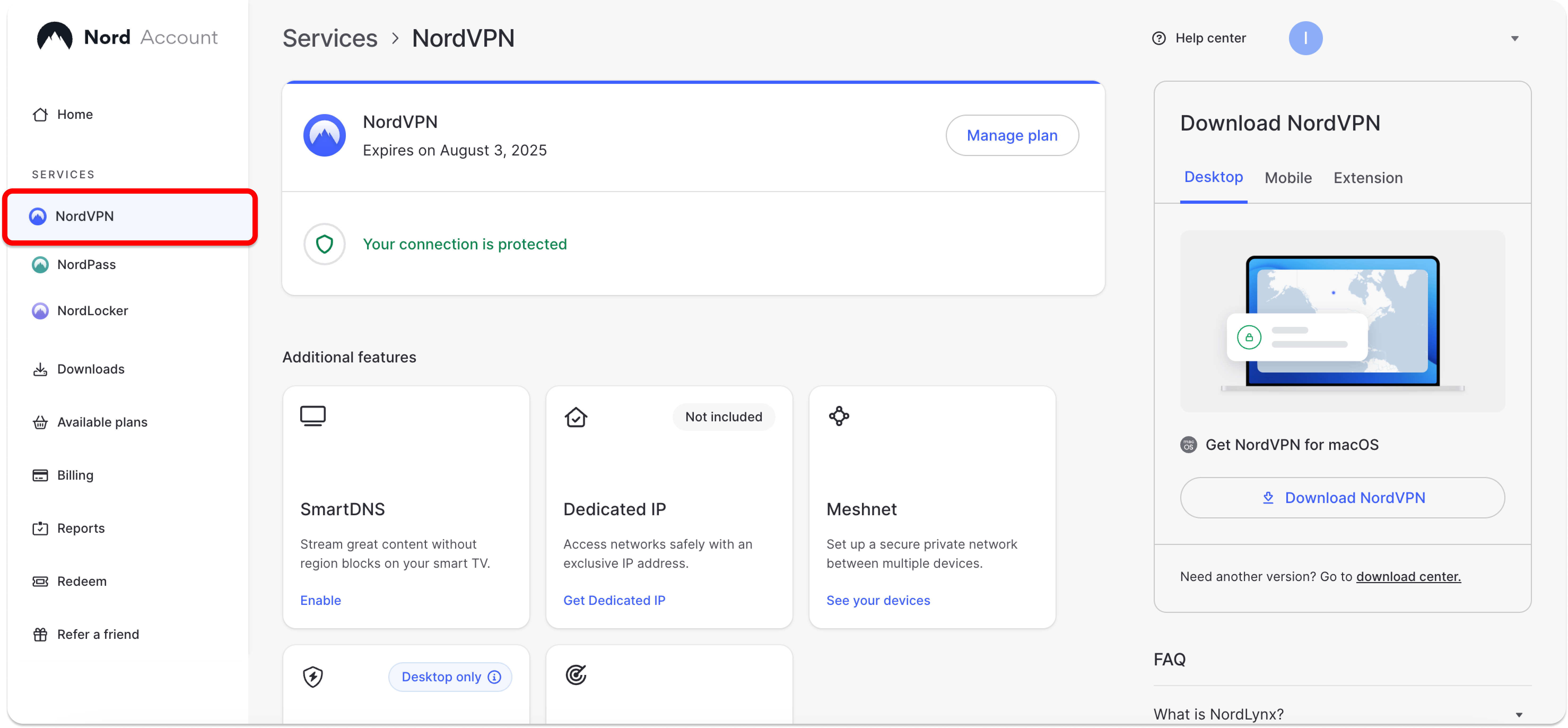 Log into your Nord Account, click NordVPN, and, under Manual setup, click on Service credentials. Here you'll find the Username and Password needed to connect manually.