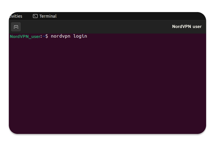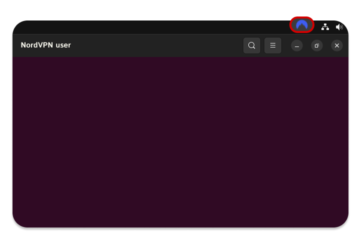 By default, the NordVPN Tray function should be visible at the top right of your screen when the VPN is open. In case you are unable to see it, open the terminal and enter any NordVPN-related command, such as: