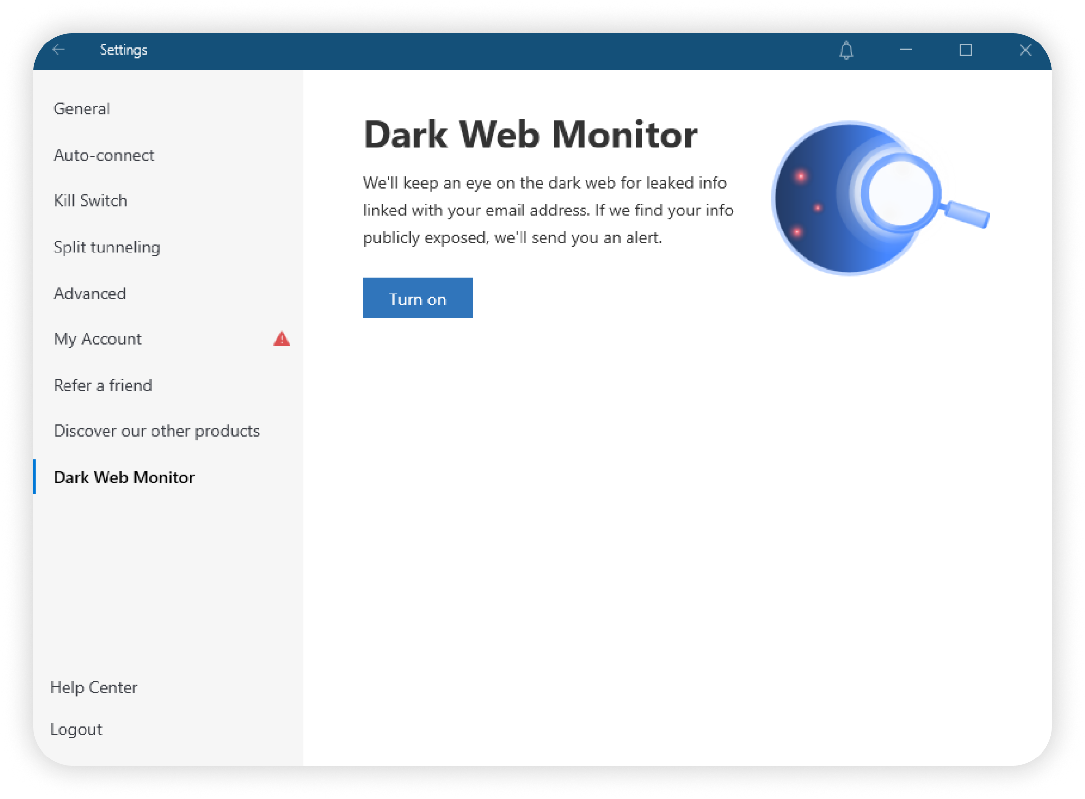 • Te informaremos si encontramos información sobre el correo electrónico de tu NordVPN en la dark web. Encontrarás más información sobre esta función en nuestra sección especializada.