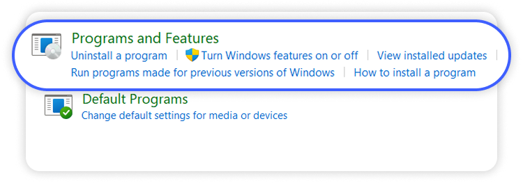 Programas y características (programs and features).
