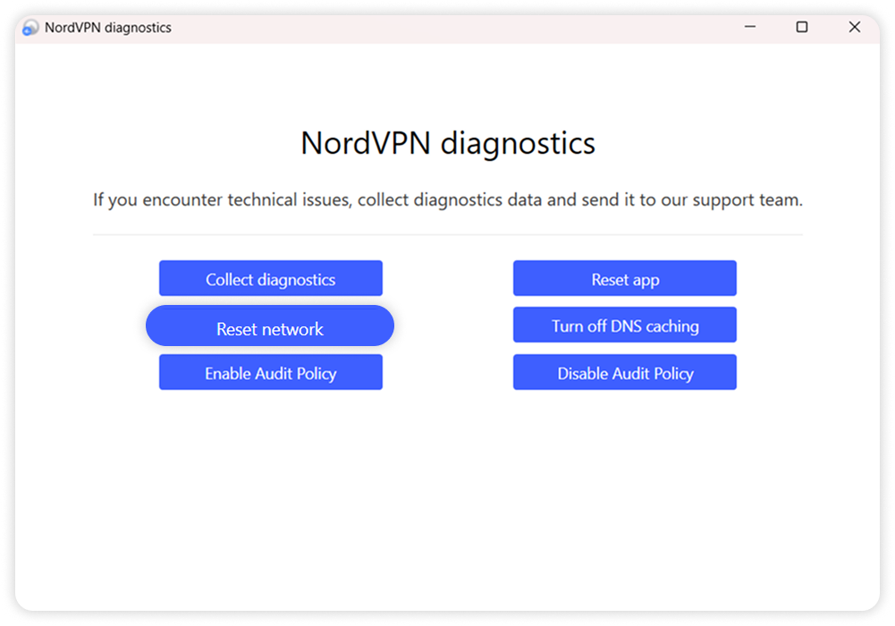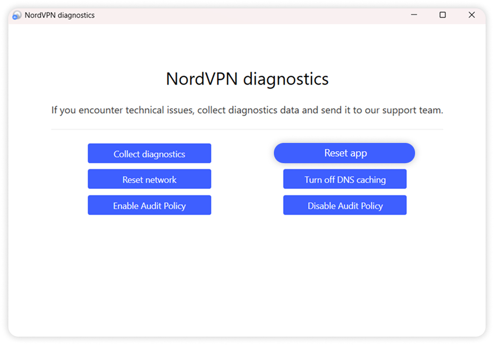 para iniciar la aplicación de diagnóstico de NordVPN.
