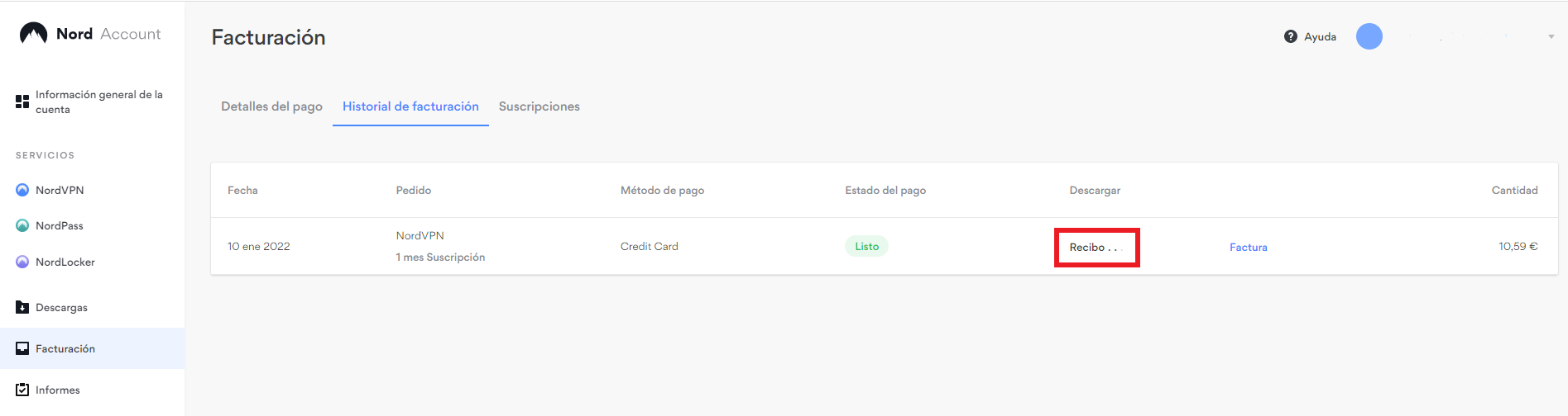 - Haz clic en el botón Recibo debajo de la columna Descargar.